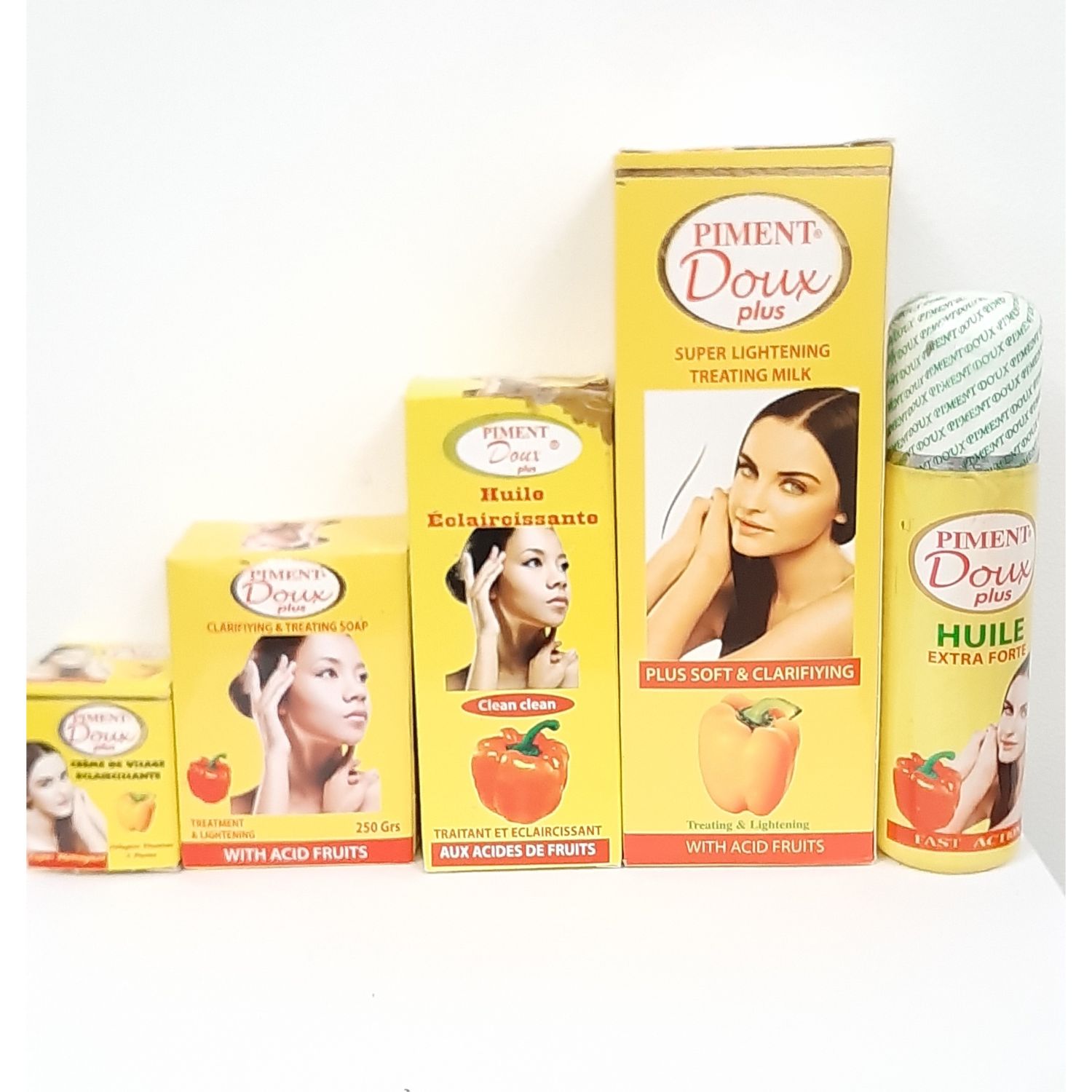 Piment Doux Lightening Serum Sealed Authentic 60mlPiment Doux concentré Traitant & Eclaircissant treats most dark spots, it effectively helps renew dead skin layers. Brightens the skin immediately and assures lengthy and durable protection. It helps remove dark spots on the skin, lightens very fast, and gives a clearer skin tone.Can be used to treat DarkKnuckles, Feet, Elbows, Knees, Inner thighs, Underarms, and Buttocks.