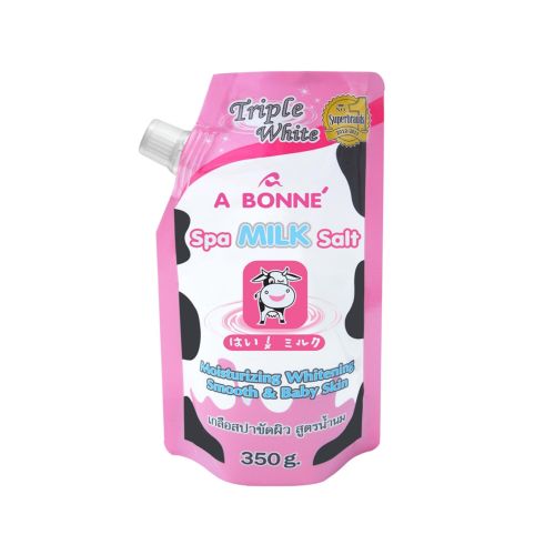 Spa Milk Salt is a skin brightening product with milk formula and natural spa salt benefits. It is used to scrub the skin to remove grime, sweat, pollutants from your body without causing irritation, most importantly to remove the dead skin cells to open up the new ones of new, smooth, bright, and radiant look. At the same time, it nourishes your skin with Pure Milk, Arbutin and Allantion.