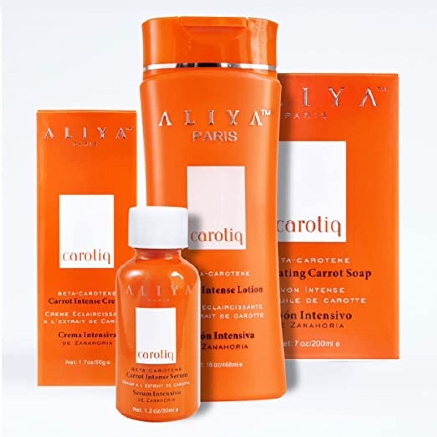 Aliya Paris Carotiq Carrot Intense Lightening Anti-Aging Lotion, Soap, Serum, Cream