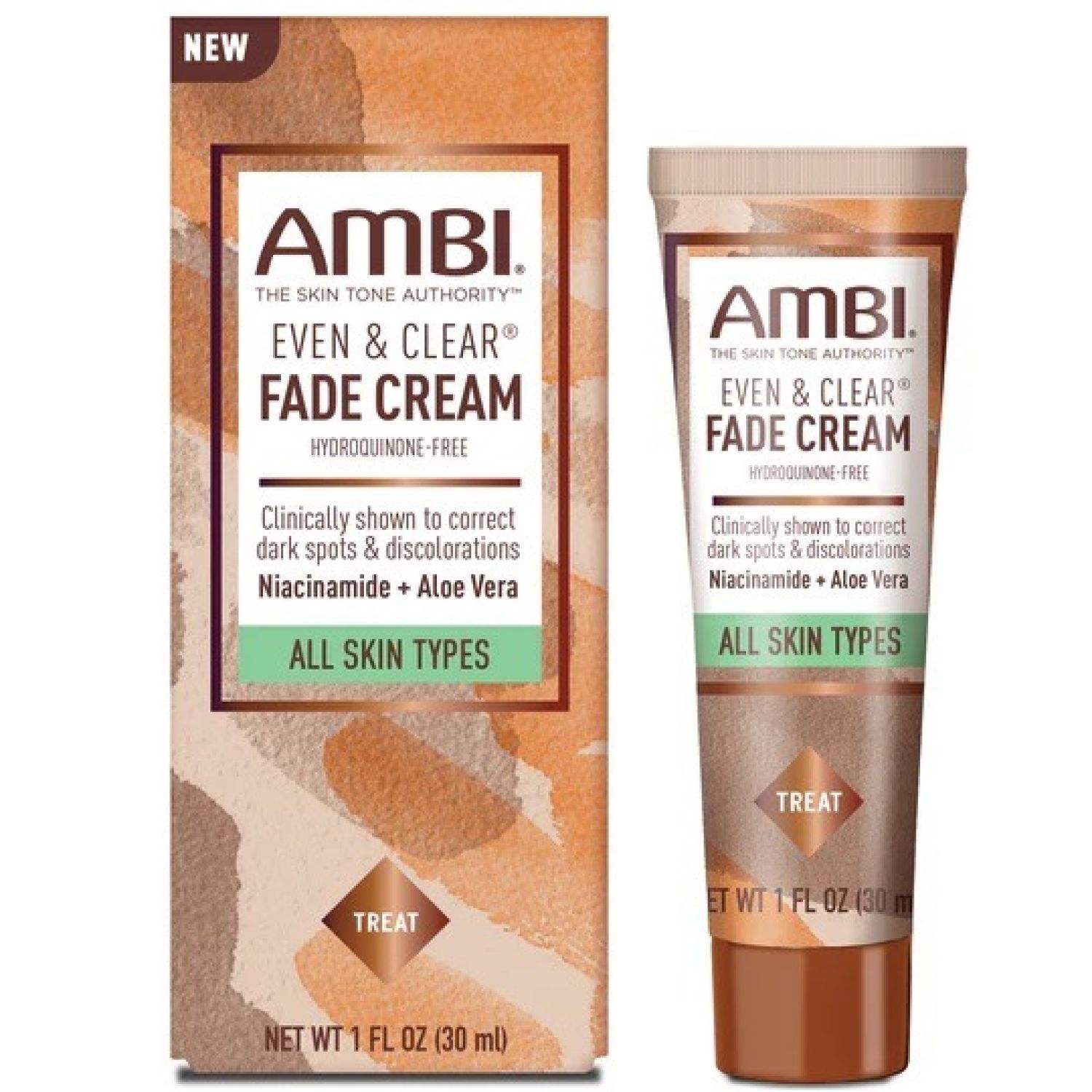 AMBI EVEN & CLEAR FADE CREAM HYDROQUINONE-FREE, is a clinically studied treatment that gradually fades and corrects dark spots and discolorations, including those caused by acne, improves uneven skin tone and deeply hydrates skin for a radiant and smooth appearance.