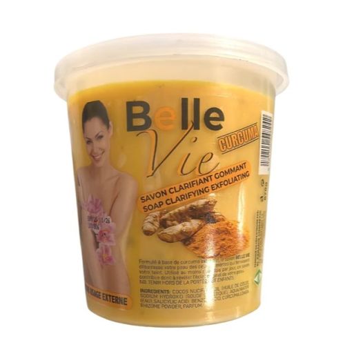 Our Belle Vie Curcuma Clarifying Exfoliating Soap is a natural cleanser that helps with oil balance and removing dirt and debris from pores. Its 670g of natural ingredients, including Curcuma Longa extract, gently exfoliates dead skin cells and acts as an antibacterial and anti-inflammatory agent. Our exclusive formula helps to restore skin's natural balance, leaving you with a radiant and healthy look.