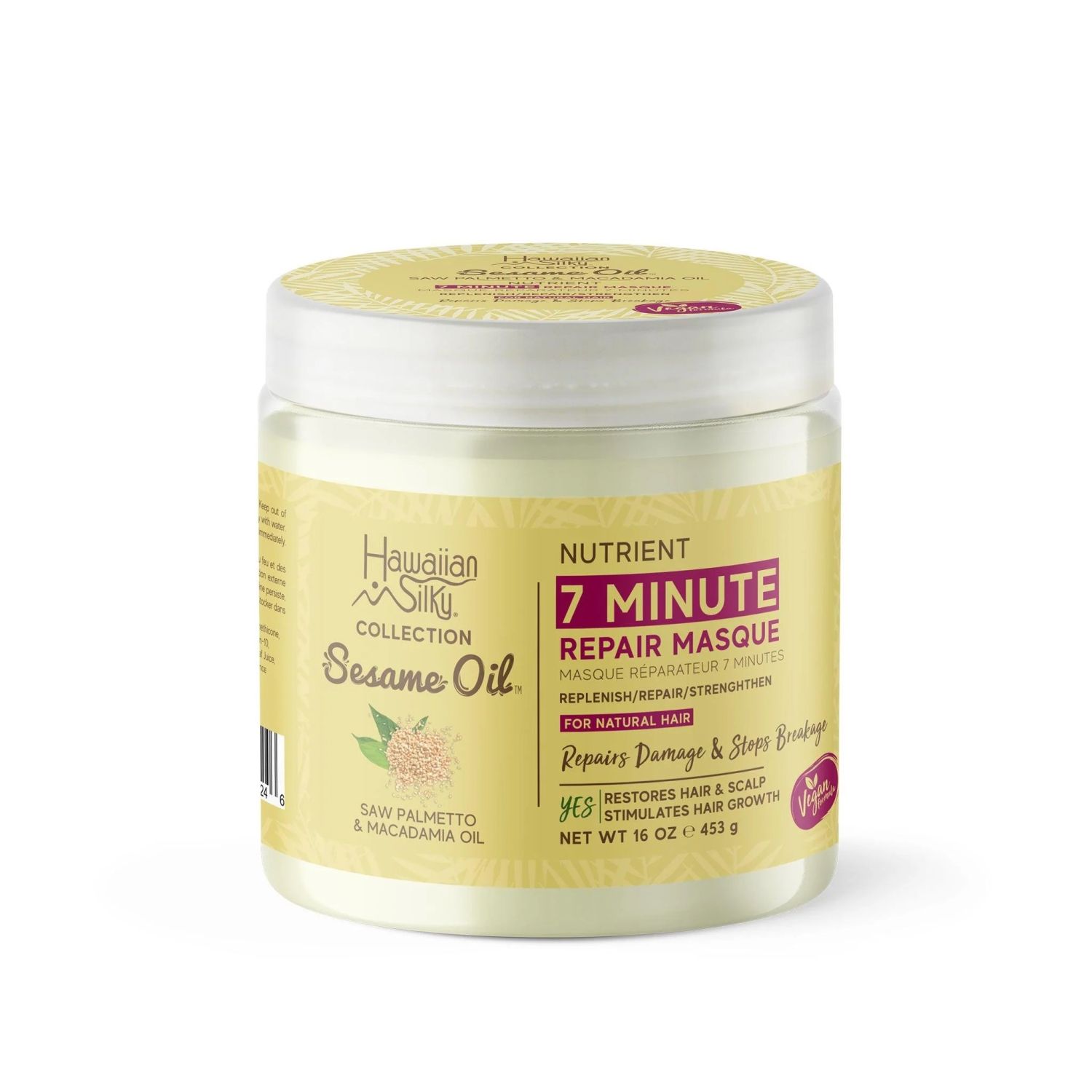 Hawaiian Silky Collection Sesame Oil Nutrient 7 Minute Repair Masque enriched with Saw Palmetto and Macadamia Oil replenish and repair over-stressed hair. A deep reparative formula that penetrates into the hair shaft to increase elasticity and reduce breakage, leaving hair strong and healthy.