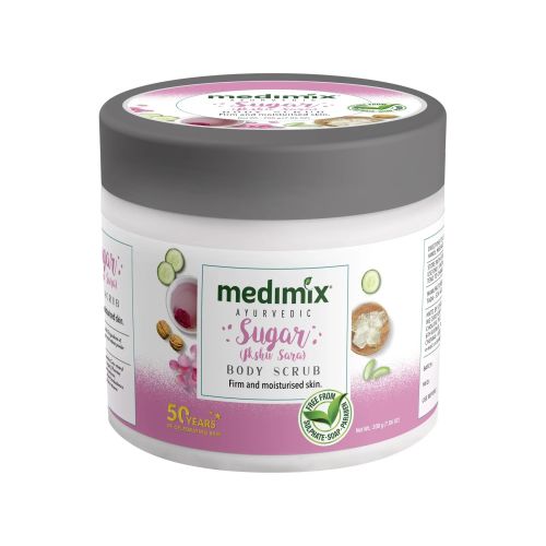Pamper your skin with Medimix Ayurvedic Sugar Body Scrub. The goodness of natural ingredients gives your skin a perfectly even tone. The blend of sugar and walnut powder exfoliates and softens your skin, keeping it supple and nourished.