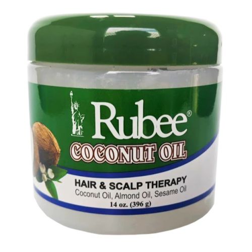 Rubee Coconut Oil Hair & Scalp Therapy boosts hair growth, promotes thickness, and repairs damaged hair. It is enriched with virgin coconut oil and Vitamin E. It also nourishes the scalp, which prevents hair loss and restores moisture to dry hair.