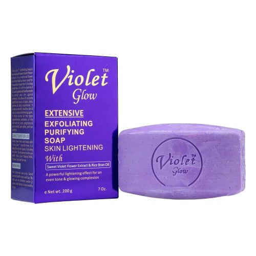Violet Glow Exfoliating Soap gently purifies and detoxifies skin removing dead skin cells restoring natural radiance. Formulated with Sweet Violet Flower Extract, Vitamins A & C and Rice Bran Oil, this moisturizing cleanser helps smooth and soften skin as it brightens tone giving it a healthy-looking glow.