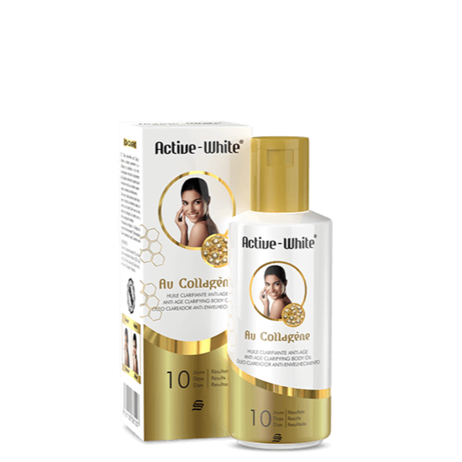 ACTIVE-WHITE with collagen oil moisturizes and clarifies the skin gently. Used daily the complexion regains radiance and harmony. In addition, thanks to the active properties of collagen, the skin is smoothed and the effects of age faded.