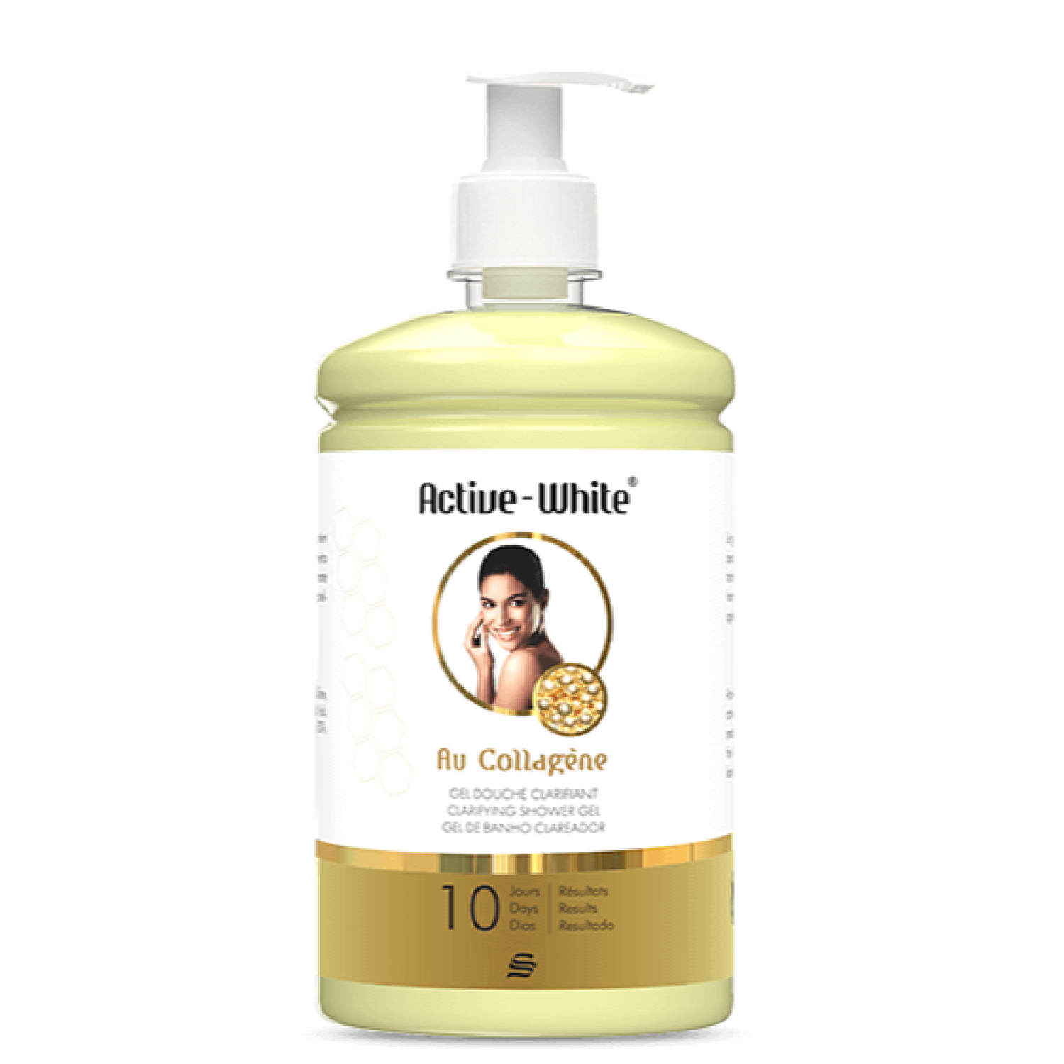 ACTIVE-WHITE shower gel with collagen contains active ingredients that contribute to gradually and smoothly clarify the complexion. It deeply cleanses the skin and harmonizes the complexion while leaving a pleasant fragrance.