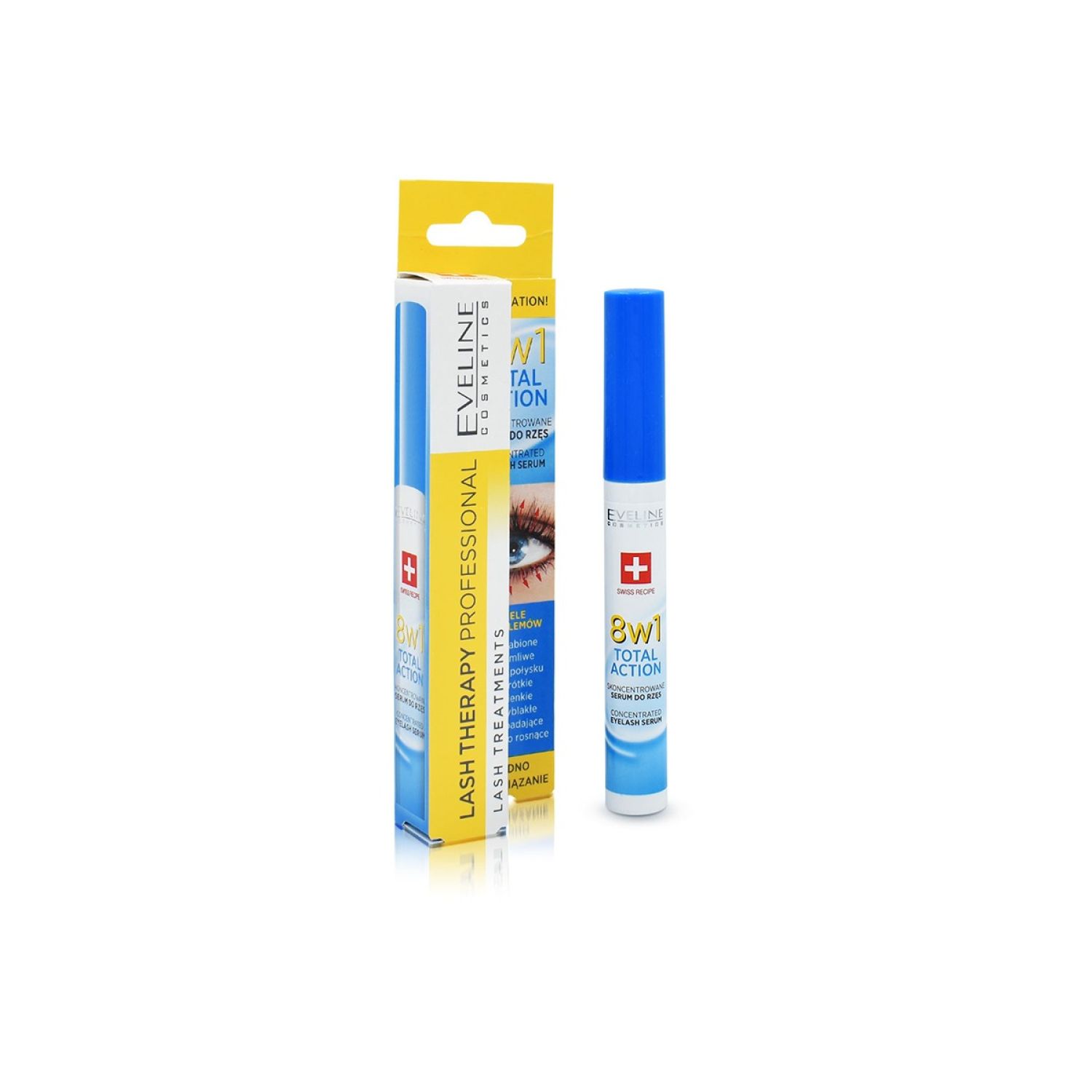 Eveline Cosmetics Concentrated Lash Therapy Prof Eyelash Serum 8IN1 is a unique formula that works on improving eyelashes condition. It is known for exceptional properties: D-panthenol, soy proteins hyaluronic acid and argan oil that effectively regenerates, protects, supports rebuilding and growth of eyelashes and prevent their breaking and falling out. It makes weak, matt eyelashes regain resilience and brilliant shine.
