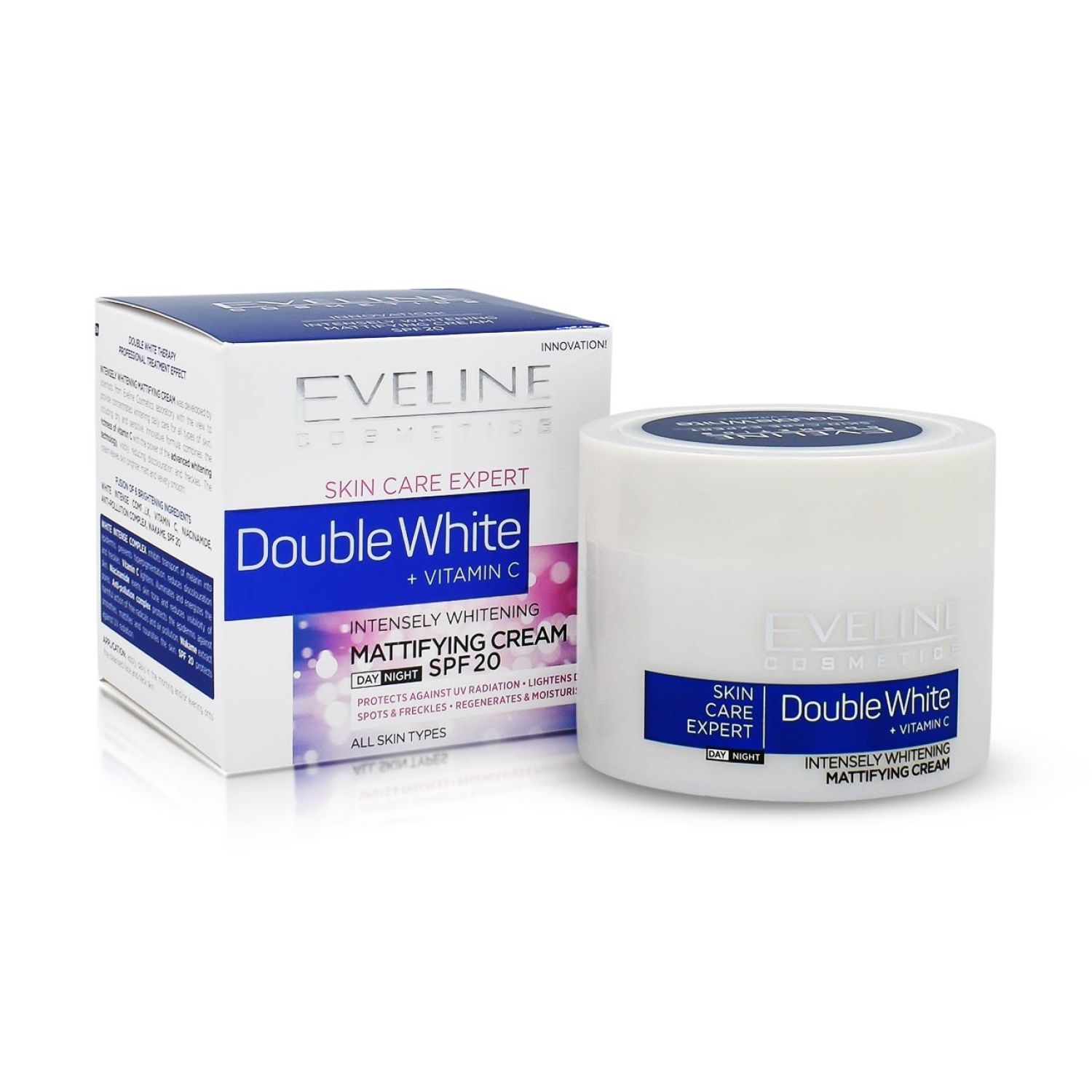 Eveline Cosmetics Skin Care Expert Double White + Vitamin C is developed by scientists from the Eveline Cosmetics laboratory to provide concentrated whitening for daily care of all skin types, including dry and sensitive.