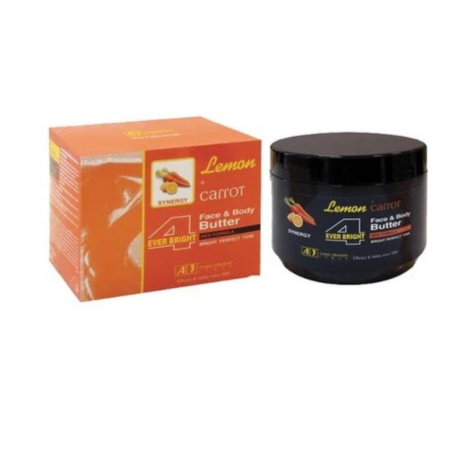 Lemon Plus Carrot Face And Body Butter in which lemon helps reduce skin blemishes and carrot promotes healthy and radiant skin also infused with natural extracts paired with Niacinamide (known to be able to treat uneven skin tone), it delivers benefits and glowing radiance. The rich formula absorbs easily, leaving skin supple and youthful.Pleasure lasts in the aromatic, fresh fragrance of the Italian citrus groves.
