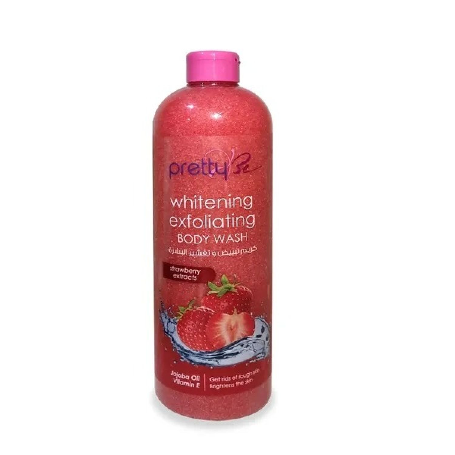 Pretty Be Whitening Exfoliating Body Wash with Strawberry Extract with Jojoba Oil Vitamin E that gets rid of rough skin and brighten the skin.