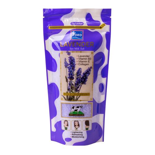 Spa salt scrub Lavender Recipe with extracts of lavender and milk Helps to relax and nourish the skin Helps to shed old skin cells Ready to reveal new skin that is noticeably whiter